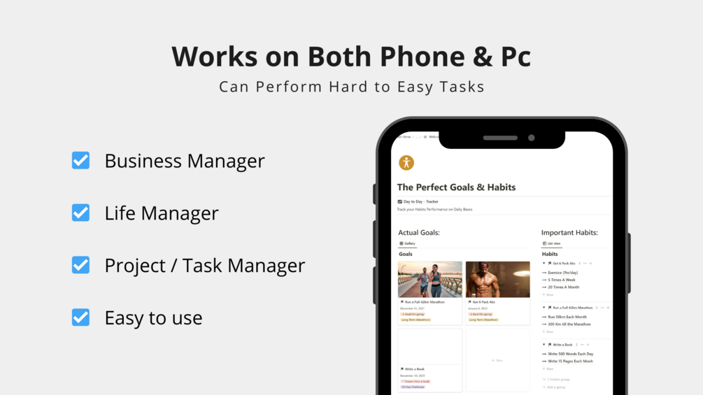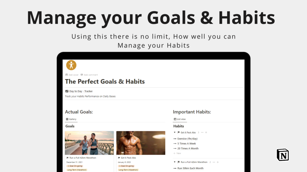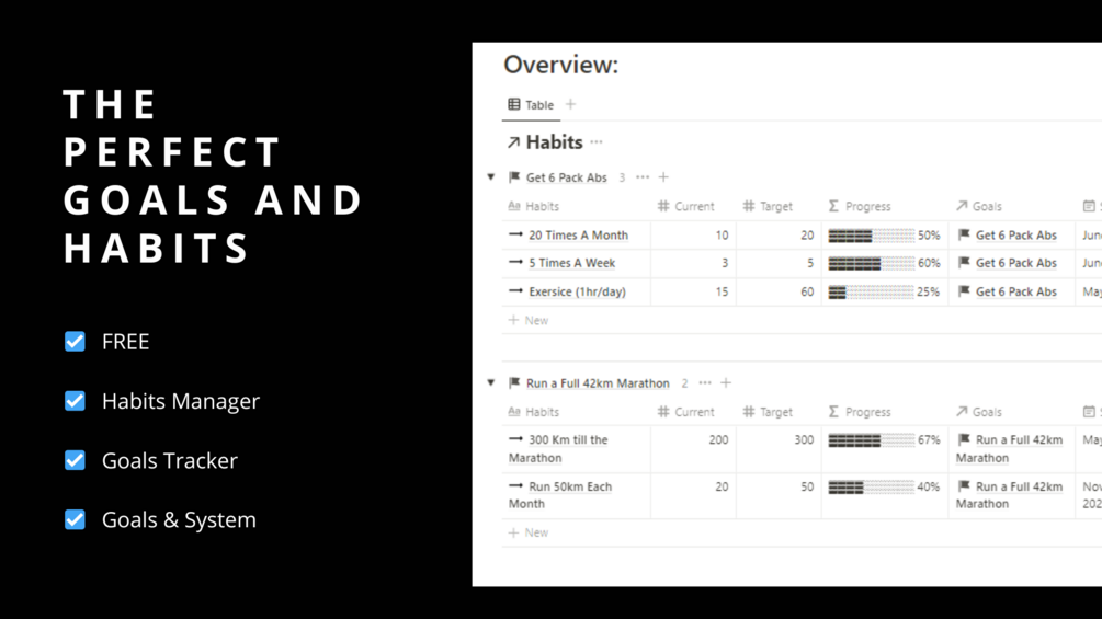 This template isn't limited to Goals only, you can also tie up specific habits to a specific goals. I Belive that a Habit is necessary if you want to accomplish your goals.