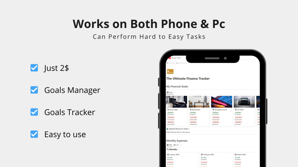 Manage your Profit & loss, Income & Expenses, Goals, Progress and much more.